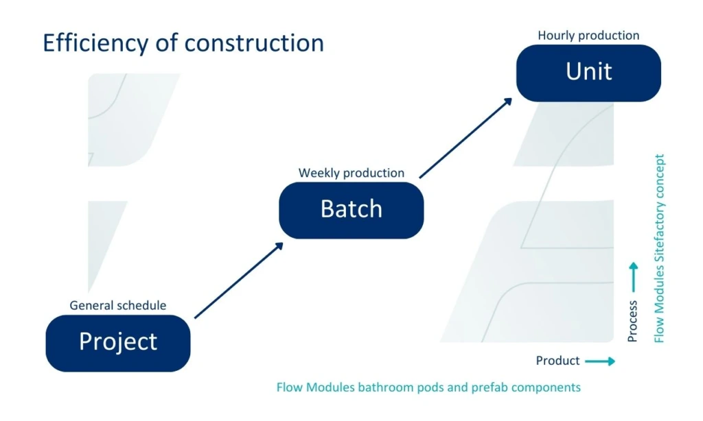 The mission of Flow Modules today is to industrialize residential construction. By improving both the building process as well as building part prefabrication, we enable wholesome, cost-efficient apartment building production.