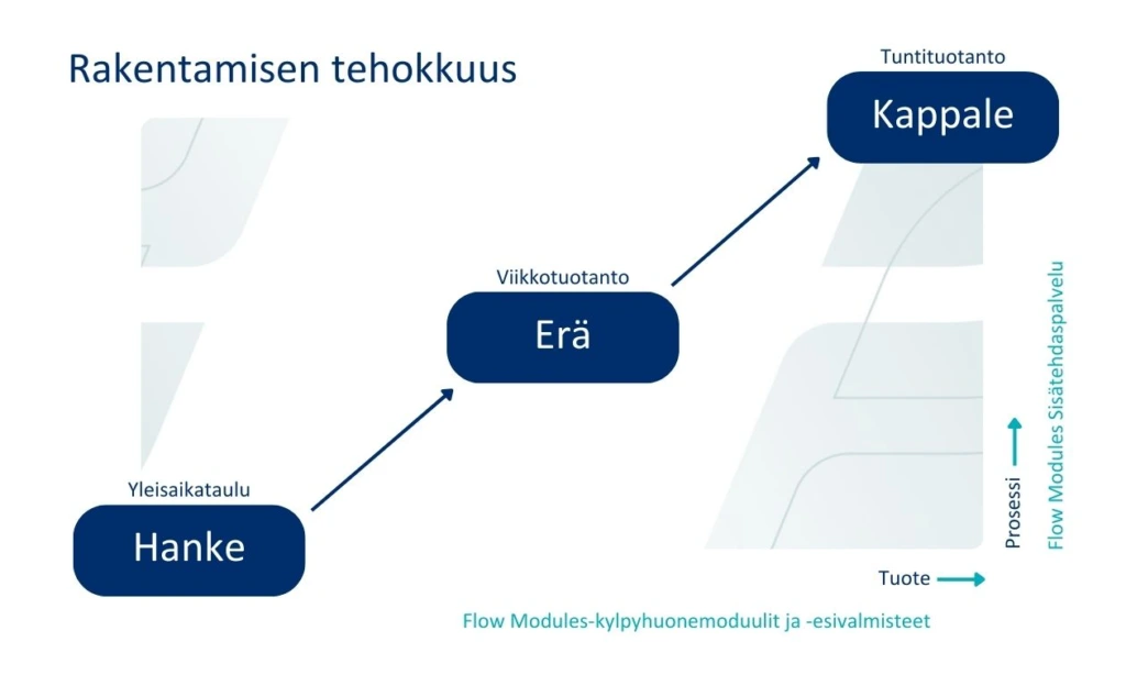 Nykypäivän Flow Modulesin missiona on teollistaa asuntotuotantoa. Parantamalla sekä rakentamisen prosessia että tuotteiden esivalmistusta mahdollistamme kokonaisvaltaisesti kustannustehokasta asuinkerrostalojen rakentamista.